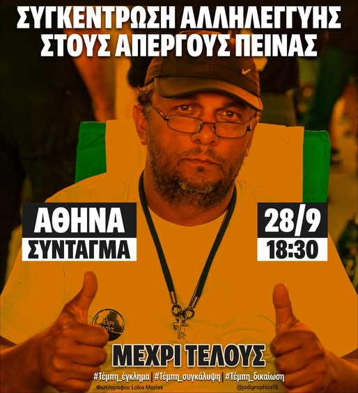 Θα είμαστε όλοι εκεί! Κυριακή 6:30' η συγκέντρωση αλληλεγγύης στους απεργούς πείνας   27/9/2025